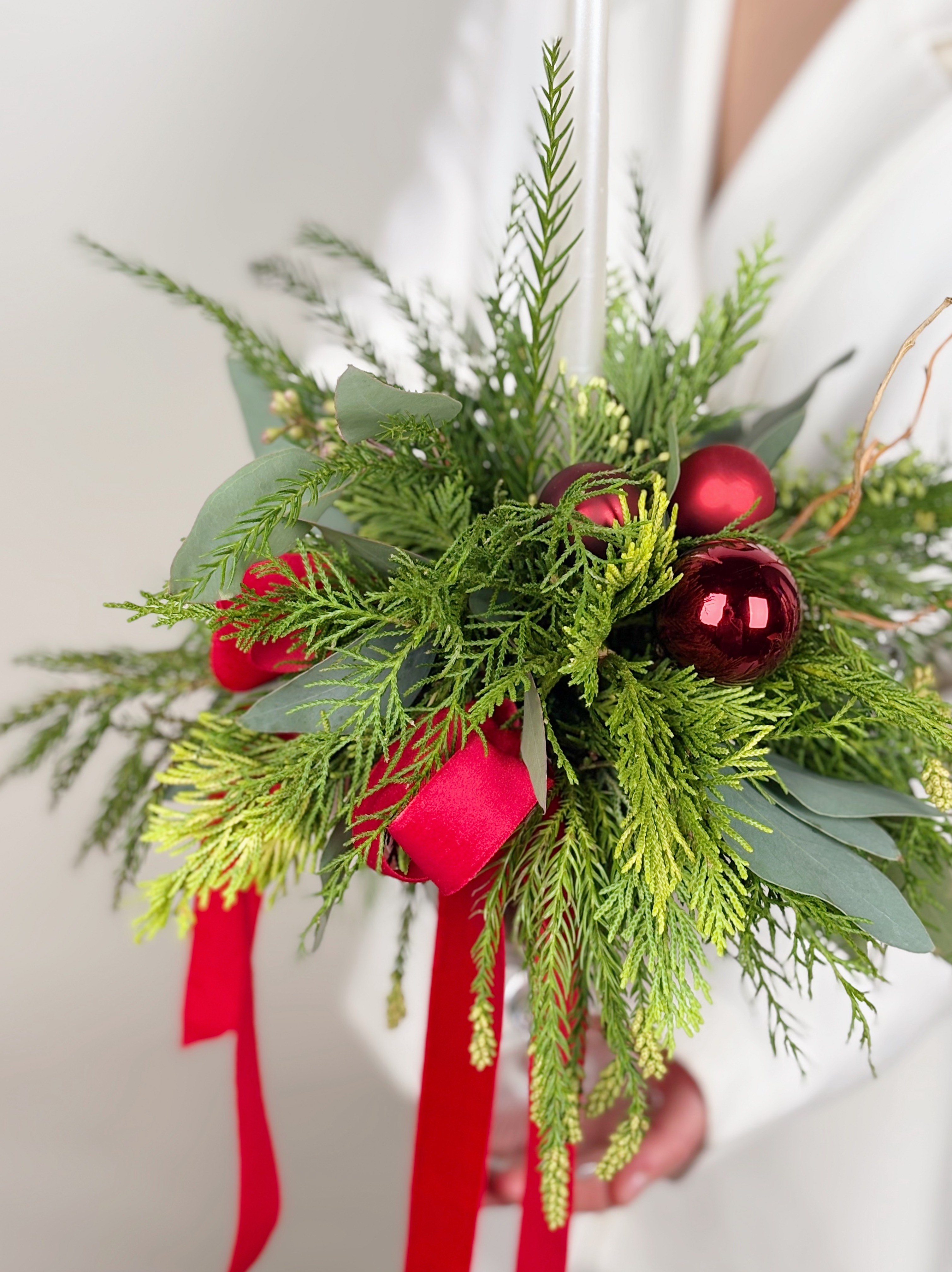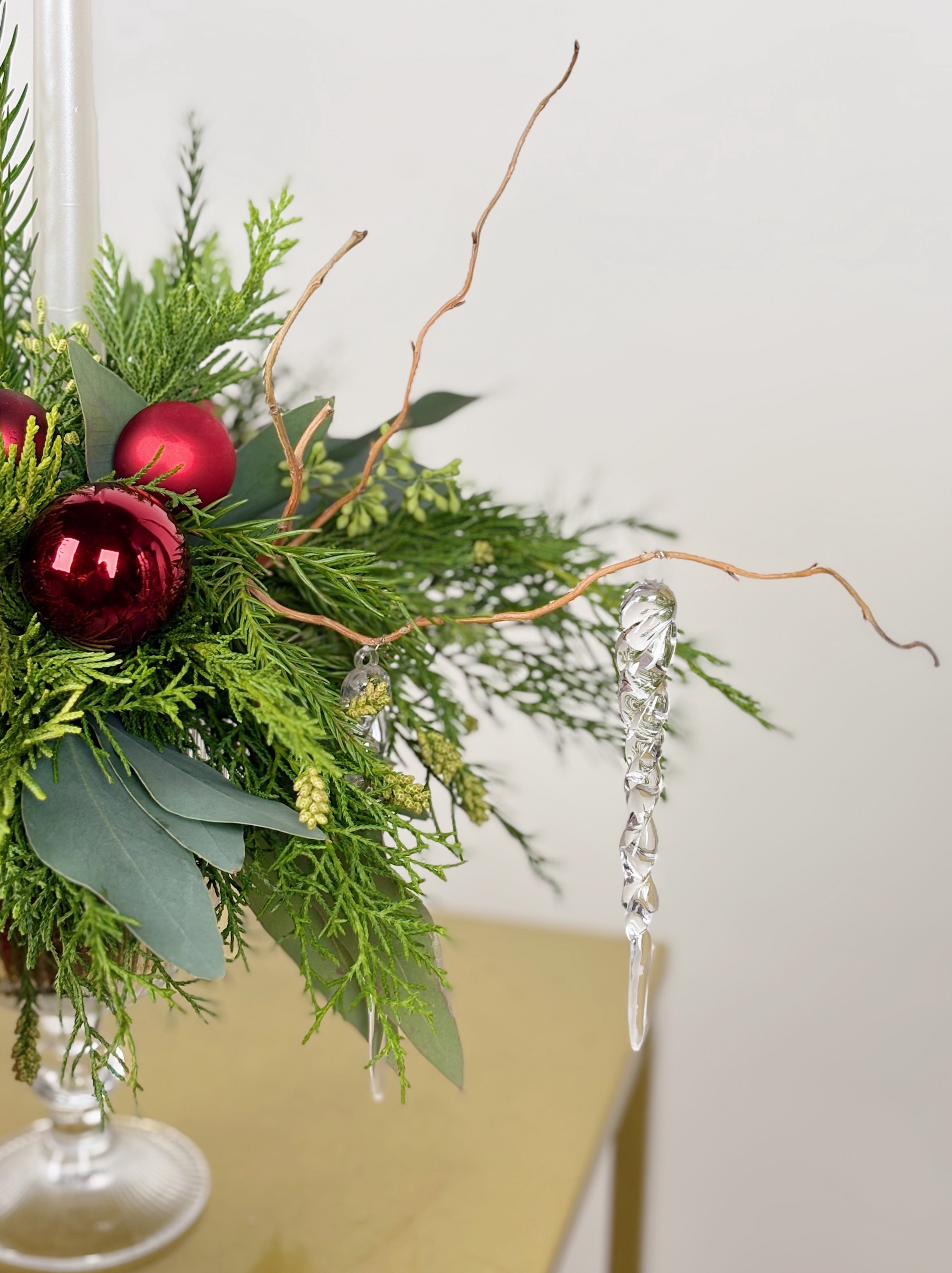 —ХВОЯ В БОКАЛЕ СО СВЕЧЕЙ В КРАСНОМ ОТТЕНКЕ