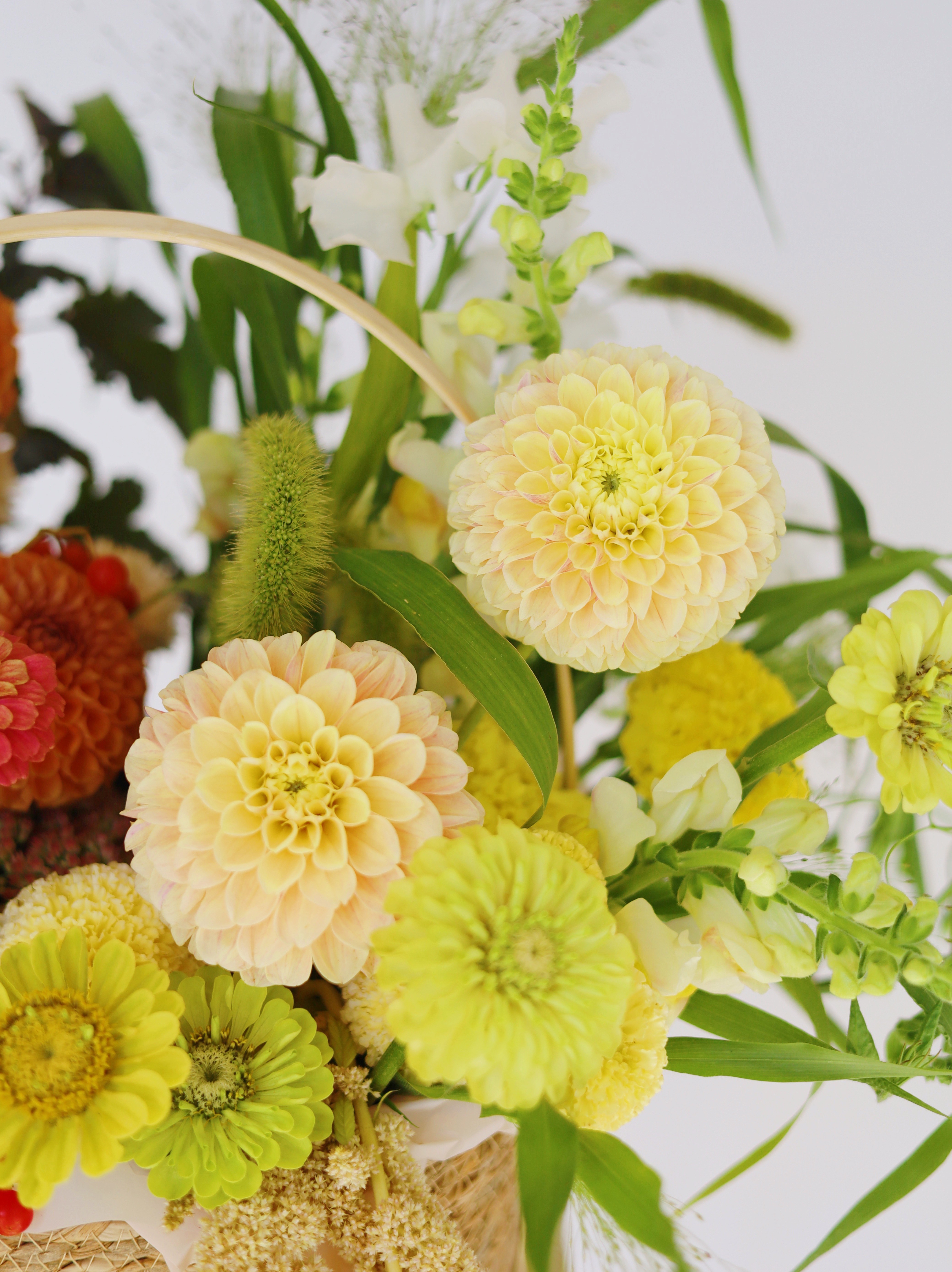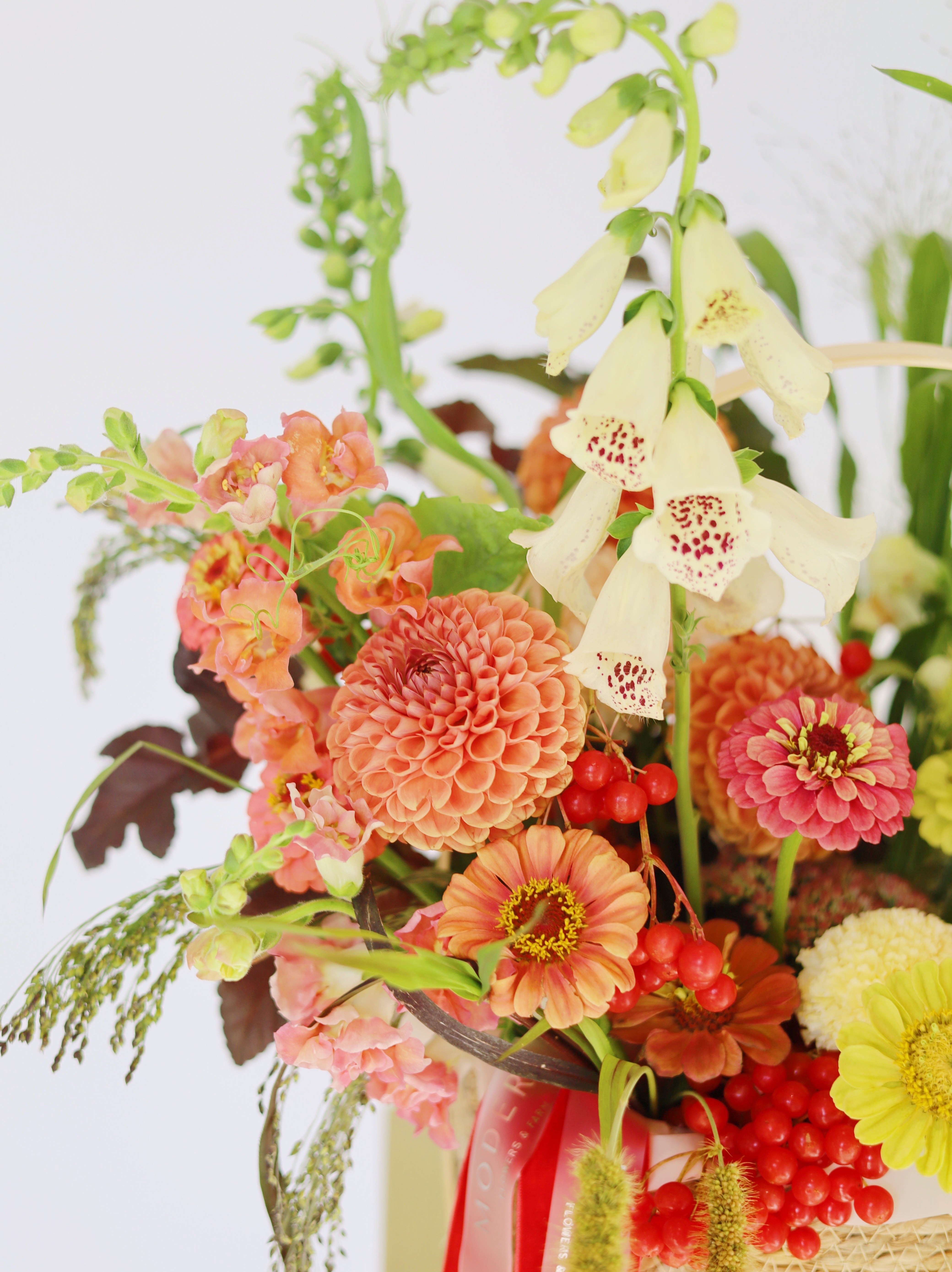 —КОРЗИНА С ГЕОРГИНАМИ, НАПЕРСТЯНКОЙ И АМАРАНТОМ