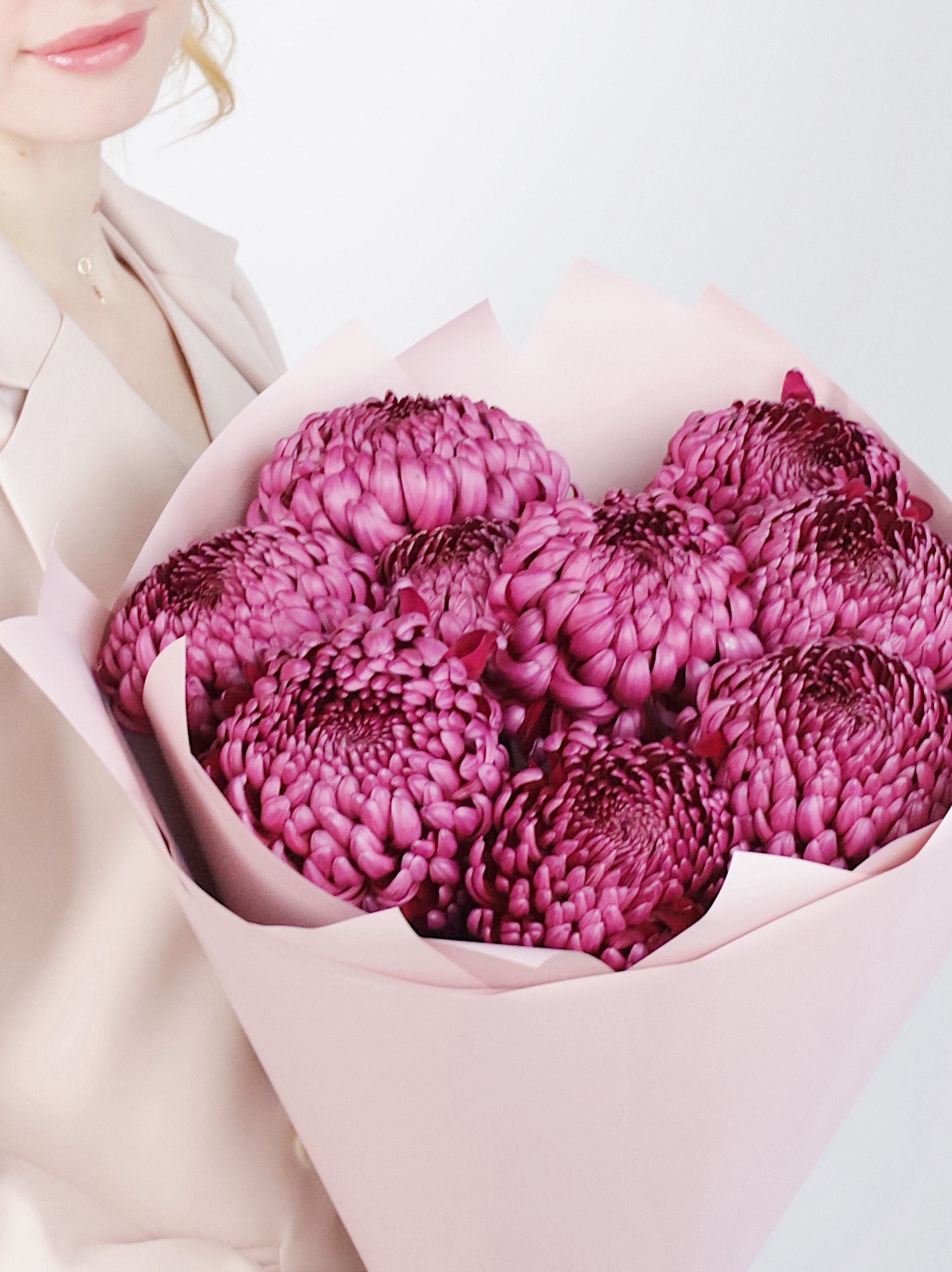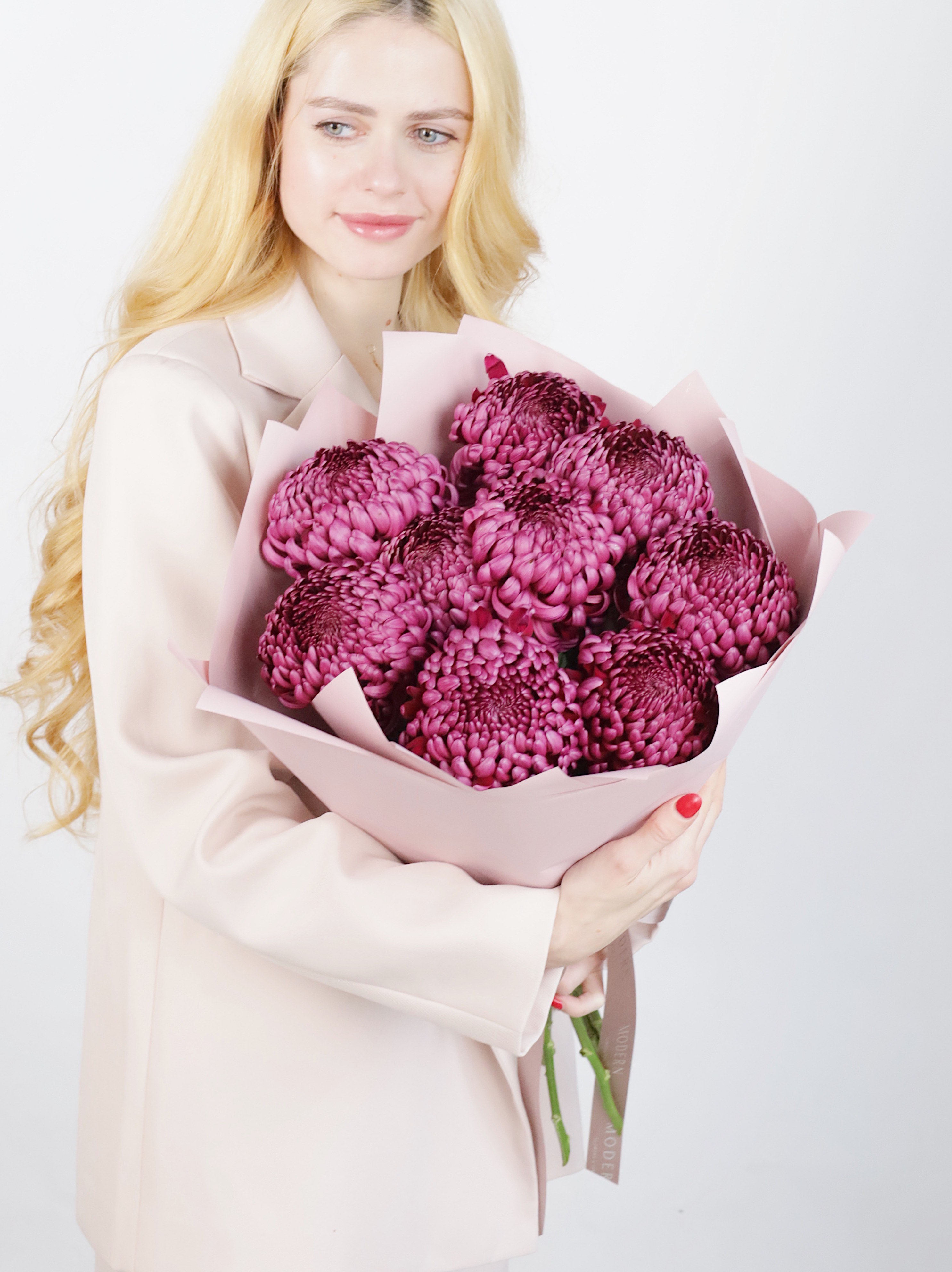 —КРУГЛЫЙ БУКЕТ ИЗ ХРИЗАНТЕМЫ БИГУДИ 9 ШТ