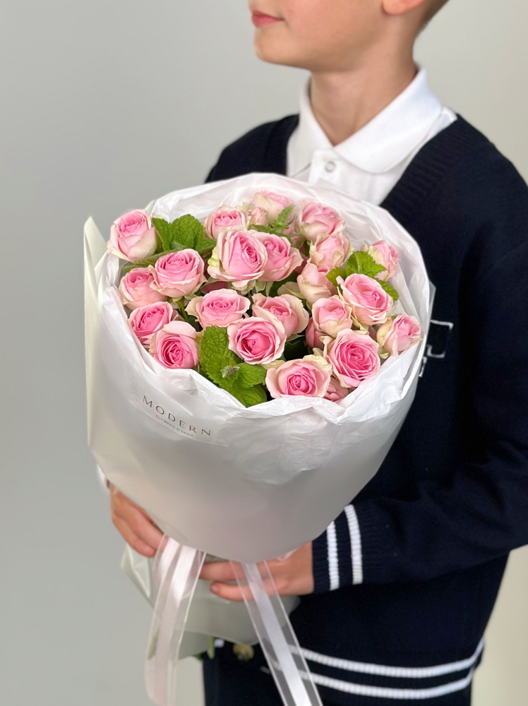 НЕЖНЫЙ БУКЕТ С КУСТОВОЙ РОЗОЙ И МЯТОЙ