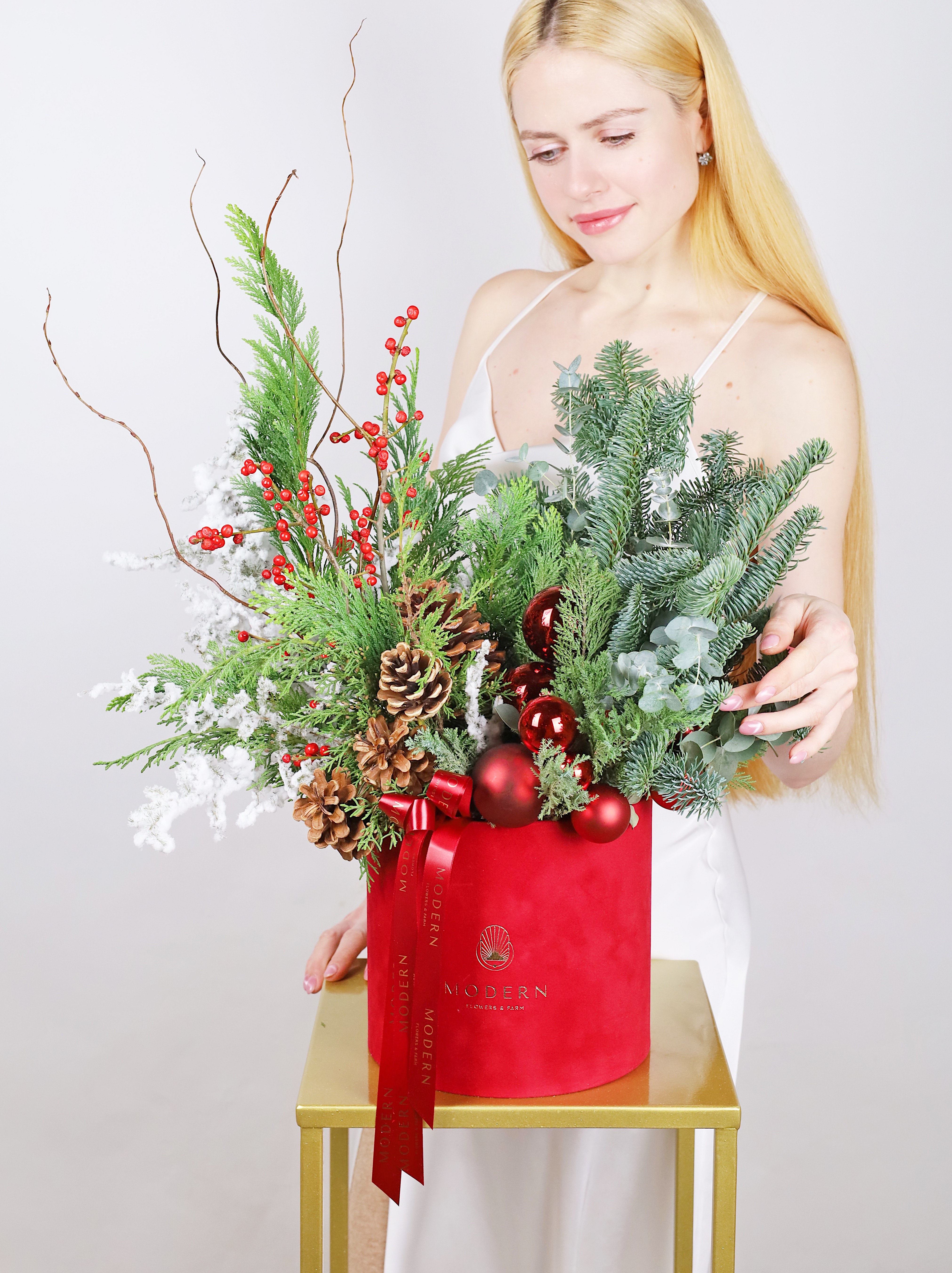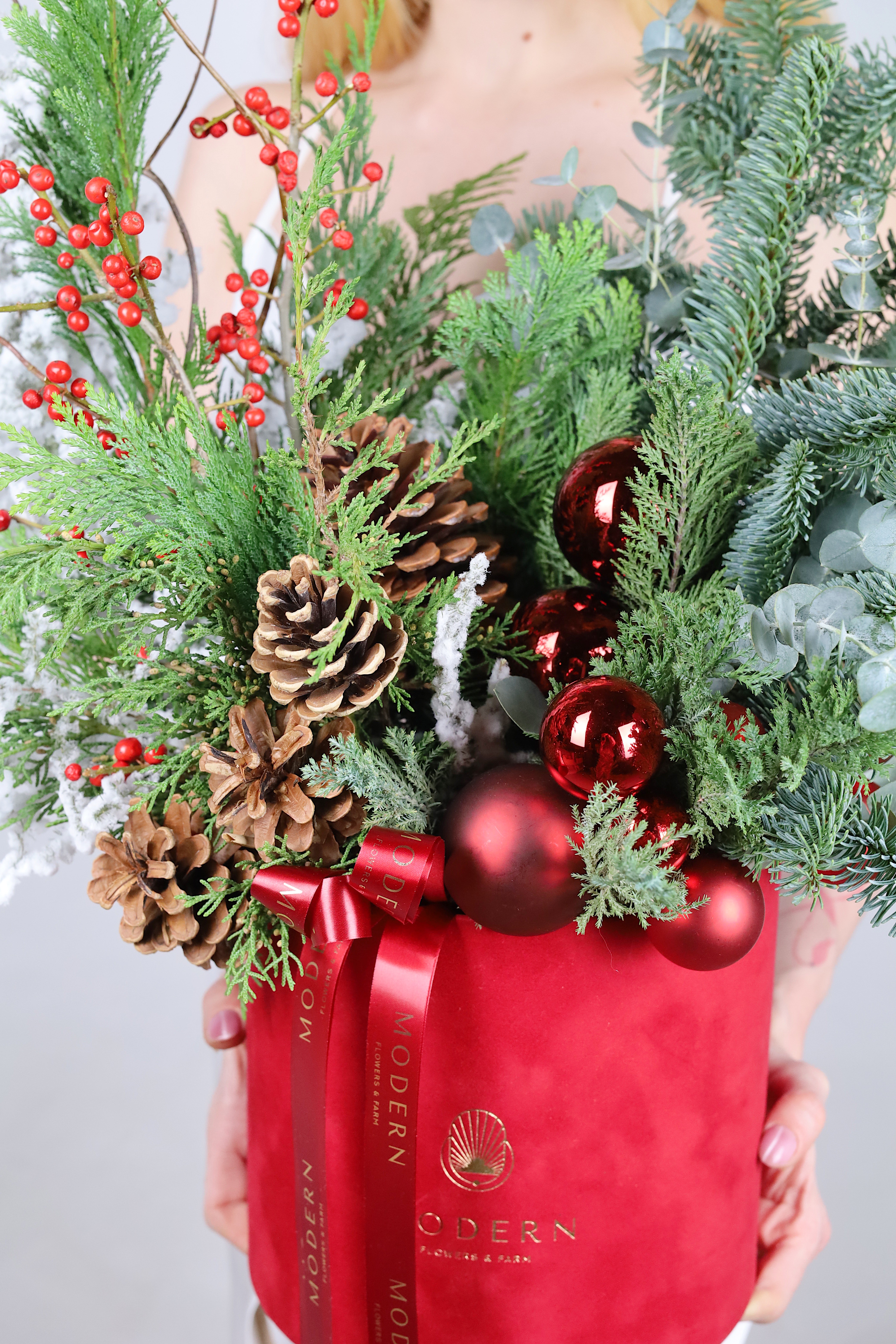 —ТОРЖЕСТВЕННАЯ ХВОЙНАЯ КОМПОЗИЦИЯ В БАРХАТНОЙ КОРОБКЕ